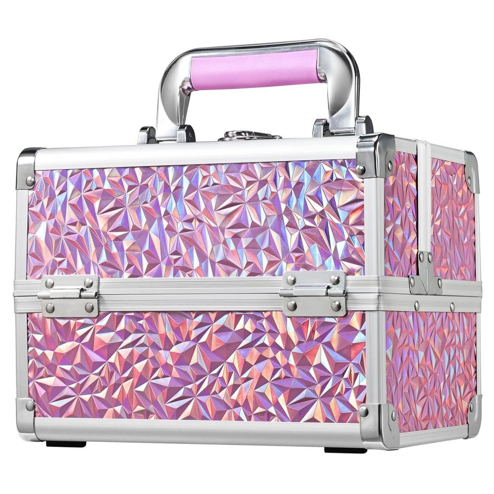 PRO Black Makeup Train Case: This travel-friendly makeup box has dimensions of 9.44 x 6.69 x 7 inches. It’s made from high-quality materials, featuring a tough combination of ABS aluminum and metal-reinforced corners for reliable durability. Although sturdy, it remains lightweight and easy to handle. The waterproof surface adds a stylish touch while effectively protecting your cosmetics from moisture and outdoor conditions.
