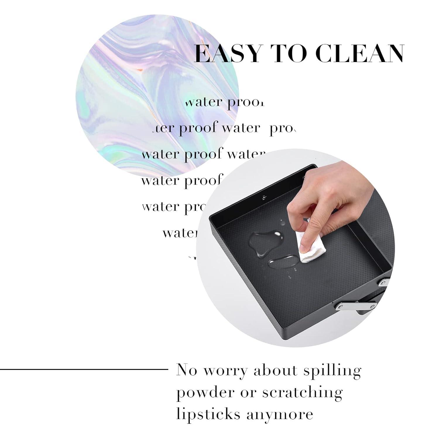 Makeup Case Organizer Easy to Clean: Keeping these trays looking their best is incredibly simple. Just gently wipe the smooth surface with a slightly damp cloth, focusing on the affected area. With minimal effort, any spills or smudges will disappear, and the trays will be as pristine and new as the day you first got them. Maintaining their flawless appearance is that easy.
